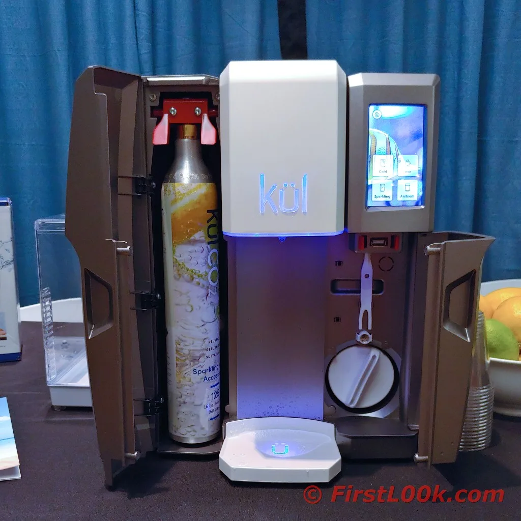 To achieve this, easy-to-replace filtration cartridges are used and last up to 350 gallons (or 2800 water bottles) per cartridge. For fizzy drinks, CO2 cylinders can carbonate up to 60 liters of water – which can be returned to Kül to be reused.