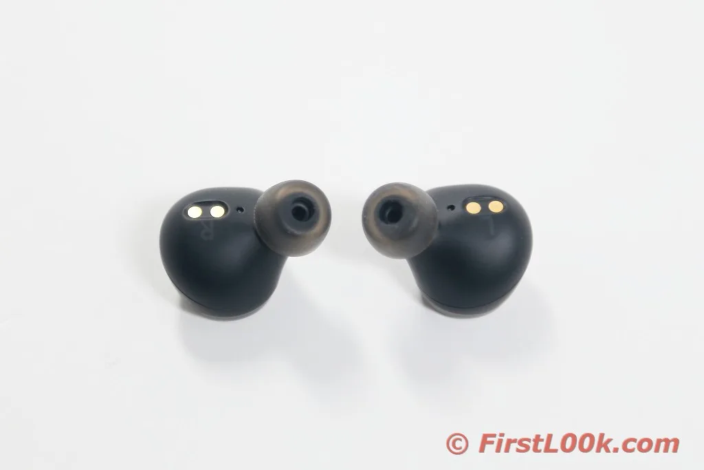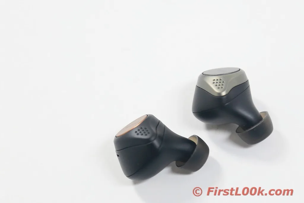 The Elite 75t is an uptown girl in the looks department. Materials are Gucci standard; it’s well refined with svelt curves, balanced colors and seams that are even all around. The outer shell looks like a smooth, sandblasted plastic, with the Active 75t being a softer silicon (rubber perhaps?) to make the IP 57 rating. Both have two metallic poles on the inside for charging purposes.