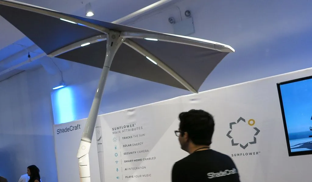 Shadecraft new shade umbrella is called the “Sunflower” for its ability to automatically reposition itself towards the sun. This unit saves you the headache of constantly having to get up to fiddle with the umbrella angle as the sun moves overhead. The automatic movement means constant shade – no more waking up after a nap to discover some awful sunburn baked on your skin.